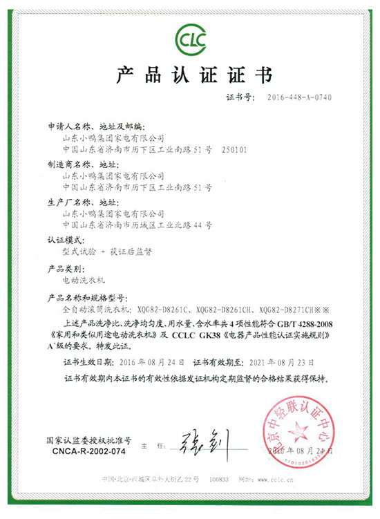 The duckling washing machine has passed the ISO 9001 international quality system certification at one time, and has successively obtained German GS, European CE, American UL international safety certification and national 3C certification, becoming a world-class qualified supplier.